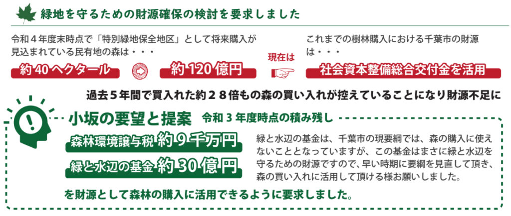 小坂の提言 ― 緑地を守るために“買える仕組み”を整える!